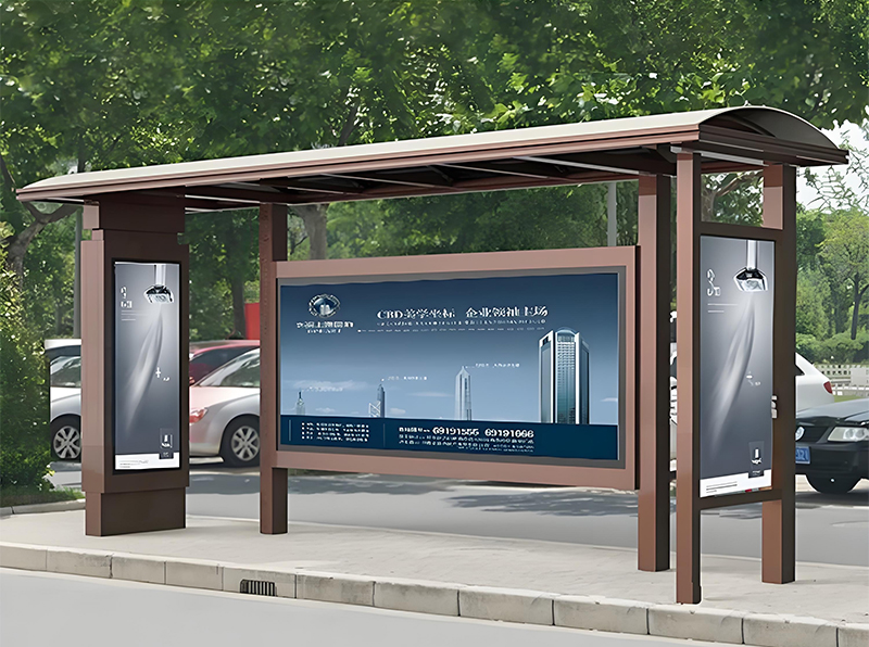 電子站牌、監(jiān)控?cái)z像頭、Wi-Fi 模塊等設(shè)備需與整體造型融合:比如將電子屏嵌入弧形信息板內(nèi),屏幕邊緣與信息板線條對(duì)齊,避免突出;攝像頭安裝在頂部框架的轉(zhuǎn)折處,以 “隱蔽式” 設(shè)計(jì)減少突兀感,既保證監(jiān)控范圍(實(shí)用),又維持造型的完整性。